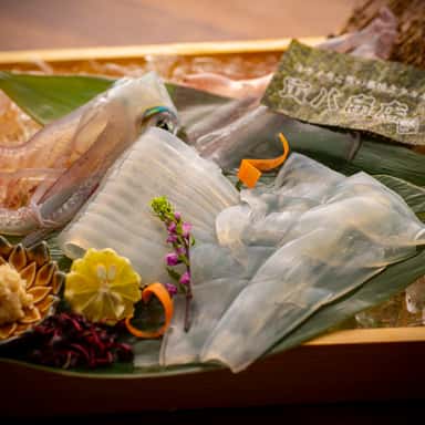 泳ぎイカとカツオの藁焼きタタキ 寅八商店 梅田店 鮮度抜群の活イカとカツオをご堪能ください
